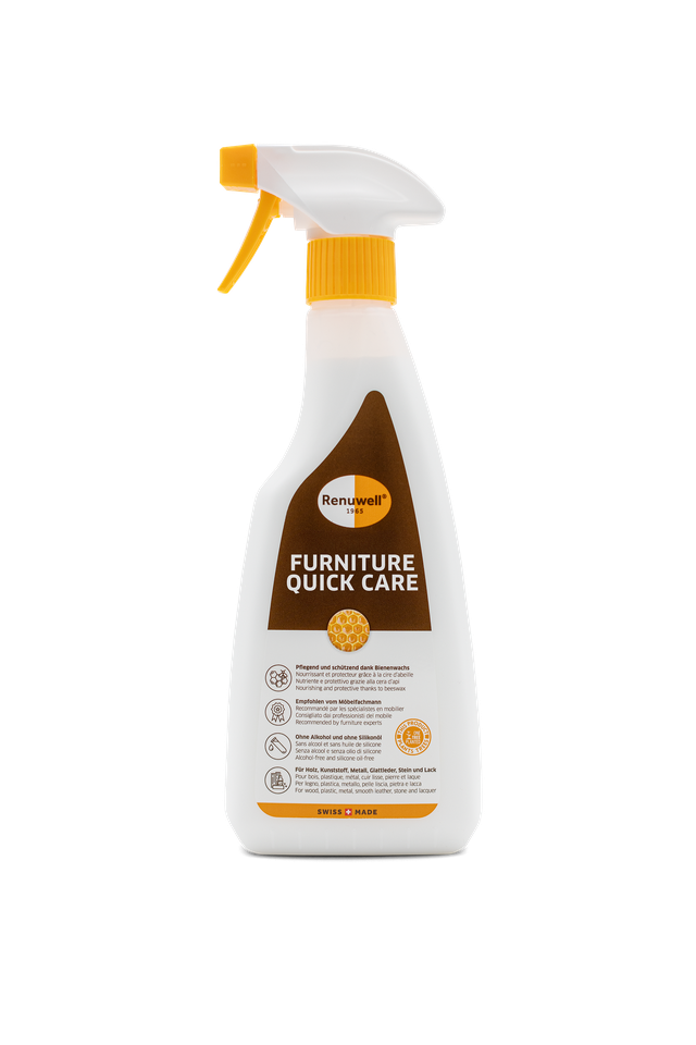 Renuwell FURNITURE QUICK CARE gently cleans, cares and protects in one application thanks to the beeswax it contains.
