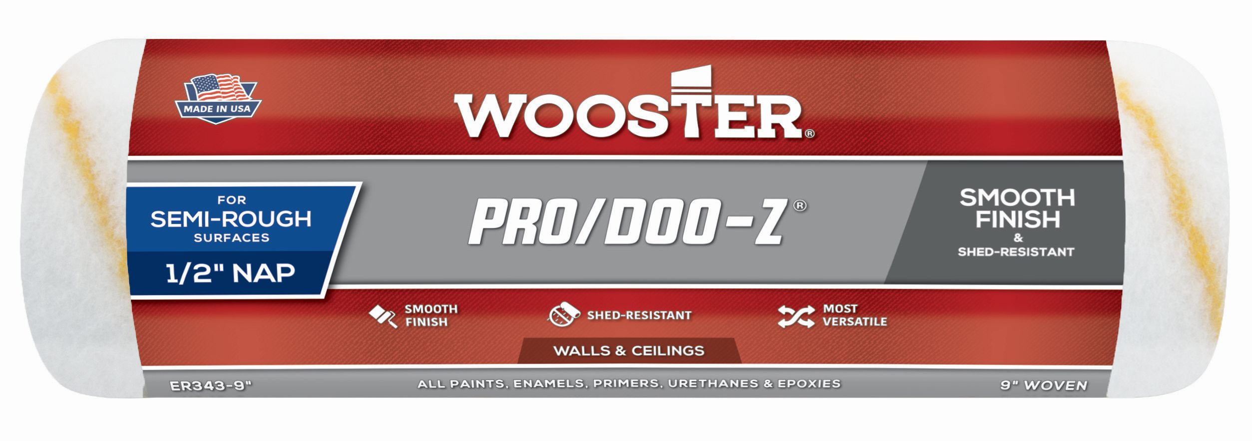 Virtually lint-free, even application with minimal paint splatter. Designed to apply emulsion, epoxies and oil-based paints. Dense, high capacity interlocked fibers prevent shedding.